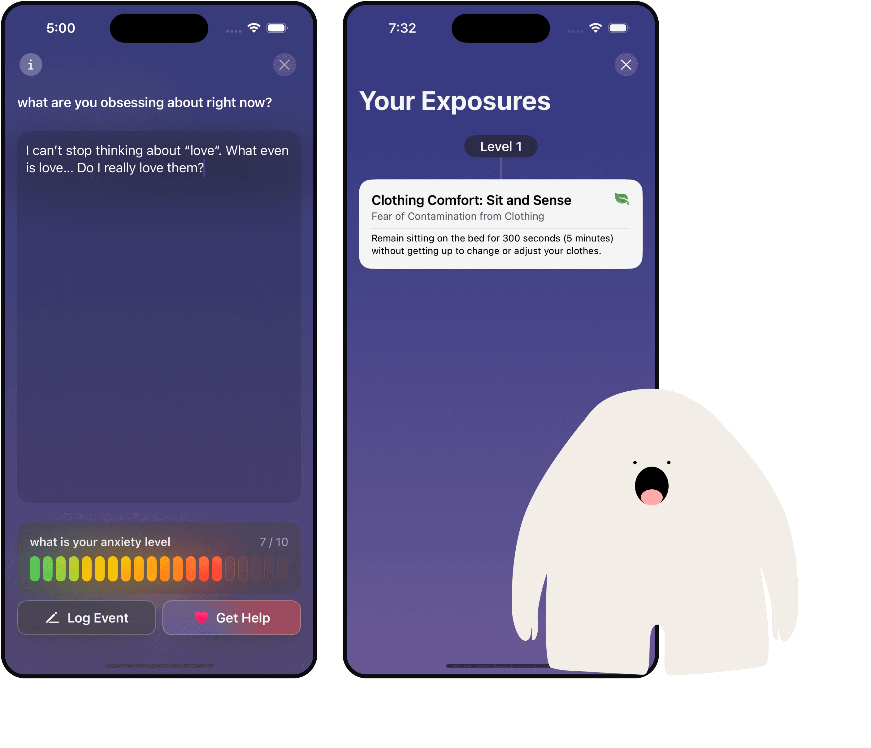 Getting a therapist is a huge step. unstuck let's you start small. Try self-guided exercises, click the panic button when you are in an OCD loop and understand what you will work on in therapy.